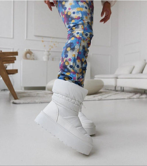 Ukrainian VibeThese short glossy snow boots offer an elegant yet playful look for the winter season. Their rounded toe and subtle 3 cm (1.18 in) platform add cha...