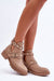 These slip-on boots strike a perfect balance between structure and playfulness. The matte eco leather upper is adorned with glinting studs and delicate plastic pearls, while a bold buckle strap wraps across the foot like a finishing gesture. Set on a flat heel and treaded platform, they offer reliable comfort with a hint of rebellion.