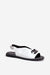 Elegant and minimal, these eco-leather sandals bring sophistication to everyday summer wear. A delicate front detail adds a refined accent to the simple silhouette. The low-profile 1.5 cm heel ensures day-long comfort, while the adjustable buckle strap allows for a tailored fit. Ideal with flowing dresses or tailored trousers.