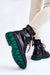 These platform boots bring together utilitarian style and everyday ease. Built from plastic that mimics eco leather, the model features a structured lace-up design with a convenient side zipper. The interior is softly insulated for added warmth, while the treaded sole ensures stability and grip on colder days. A practical yet striking silhouette for daily wear.