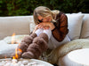Tall, below knee height, elegant sheepskin lined boot with a twist. Soft leather outer with super soft faux fur trim and metal chain detail. One of Luxe's all time best sellers.
