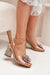 Refined and ethereal, these transparent sandals are designed to catch the light from every angle. A sculpted front ornament adds visual depth, while the crystal-embellished column heel provides graceful elevation. The soft leather insole gently conforms to the foot, offering both structure and comfort for elegant outings and formal celebrations.