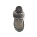 Closed mule slipper with platform sole. Lined in soft shearling with shearling cuff. Suede finish.
