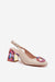 Crafted from supple natural leather, these sandals blend classic elegance with modern flair. The closed toe adds a timeless touch, while a unique front ornament draws the eye. The 8 cm heel, embellished with subtle patterning, offers a statement look with reliable support. Finished with an adjustable ankle strap and a soft leather insole, they deliver all-day comfort for any occasion.