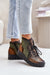 These utility-inspired boots fuse rugged shape with everyday comfort. Crafted from natural leather with textile accents, the model sits on a thick platform heel that adds subtle height while keeping steps steady. With classic lacing and an interior zipper, they provide a precise fit and easy access. Ideal for transitional weather and modern layered looks.